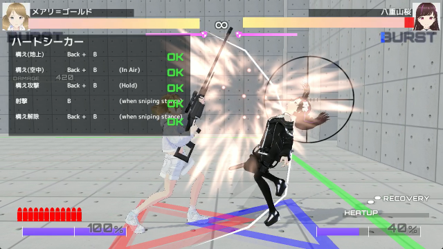 構え中は相手を追尾するレティクルが表示され、射撃に派生するとその位置に攻撃を行う。