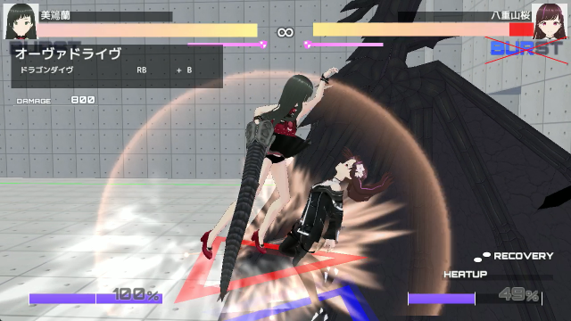 急降下部分は足元無敵で下方向に吹き飛ばすので空中コンボからダウンを奪いやすく、またガードクラッシュ値が高めに設定されている。