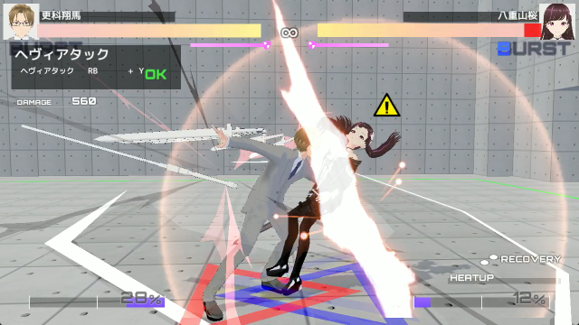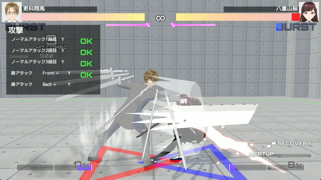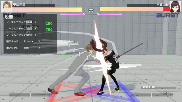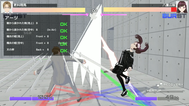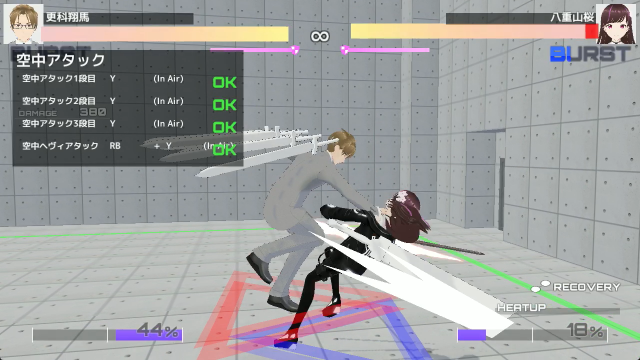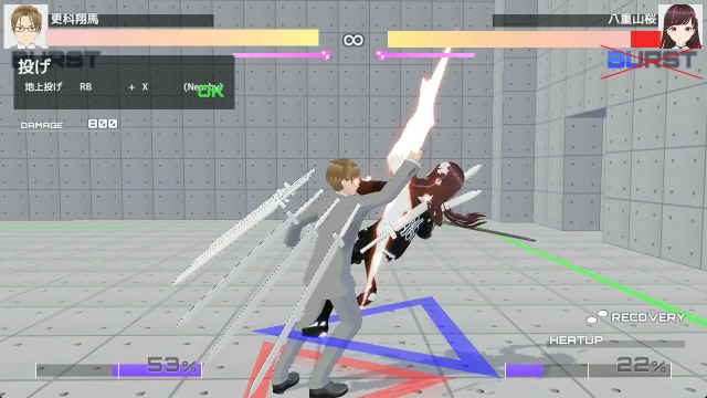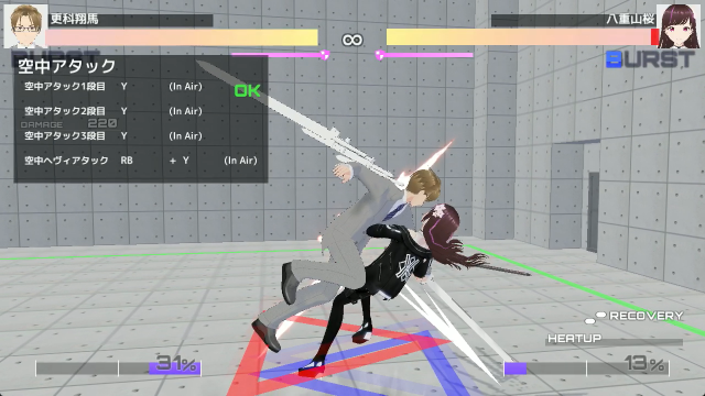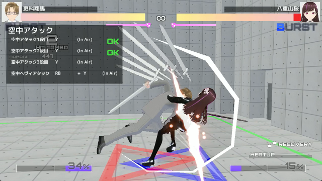 通常ヒットで上方向に吹き飛ばし、カウンターヒット時は受け身不能となるため追撃可能。