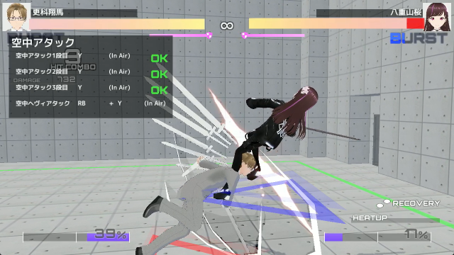 発生が早く、空中ノーマルアタックの三段目を出すよりこちらに派生した方がコンボが安定しやすい。