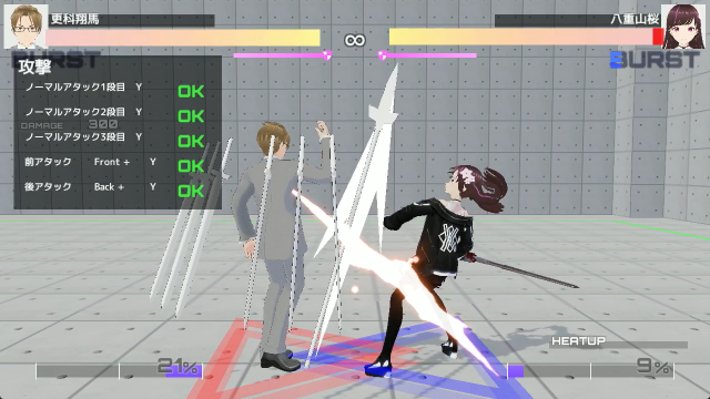 近距離攻撃のリーチはあまり長くなく、遠距離攻撃との間に若干苦手な距離が存在する。