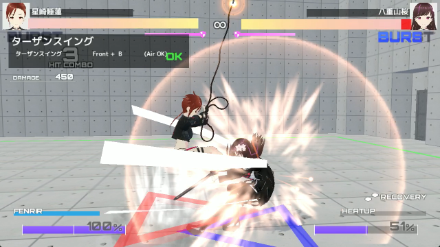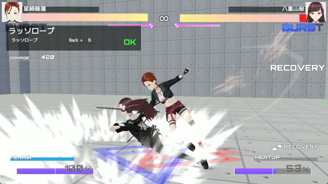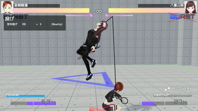 地面バウンドを誘発するため追撃可能で、簡単にループコンボが可能だが、フラストレーションゲージが激しく上昇するのでバーストされやすい。