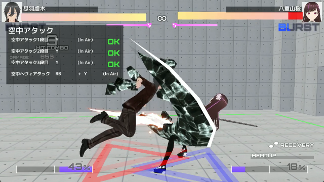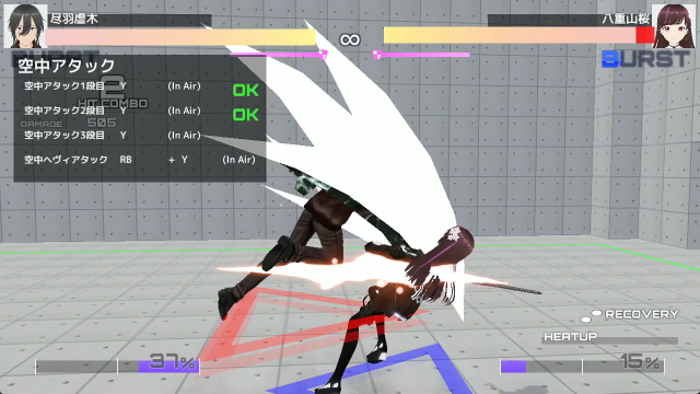 空中ヒットでも必ず崩れ落ちになるため、ここからさらにコンボを継続することができる。