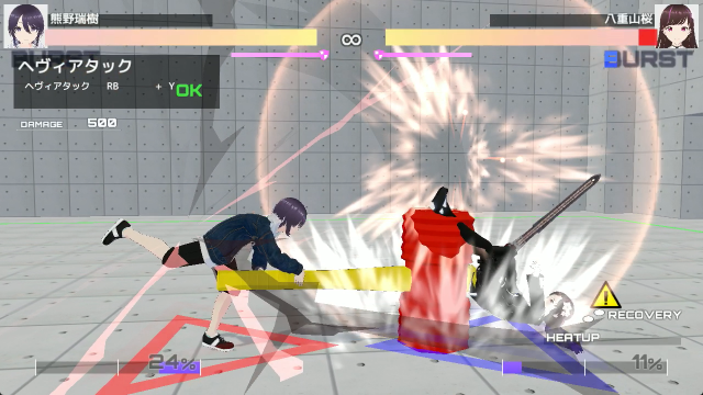 リーチがそこそこあり、手前に吹き飛ばし、硬直時間がそこそこあるが受身不能時間も長いため空中ヒットすればノーマルアタックで拾い直すことができる。