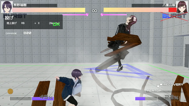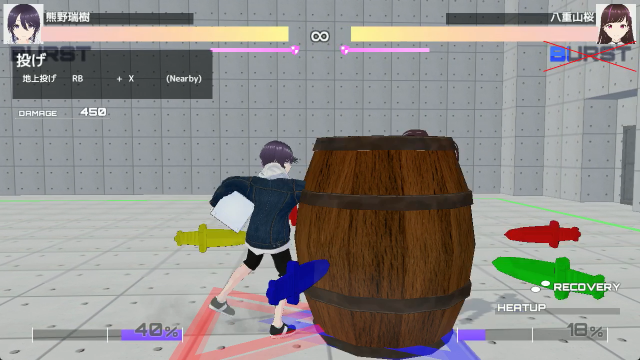 小ジャンプして相手の頭に箱をかぶせ、ヒットしたらヒップアタックで吹き飛ばす打撃投げ。