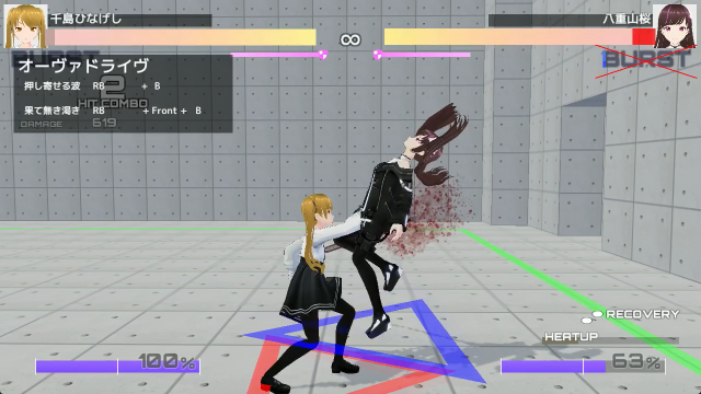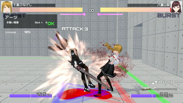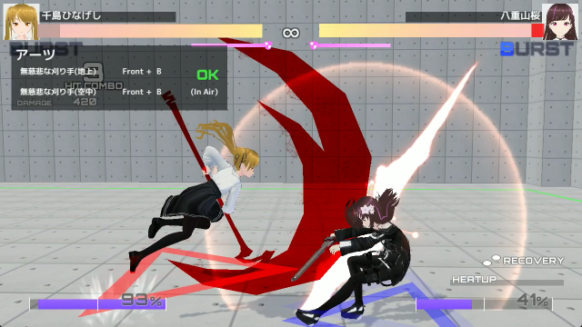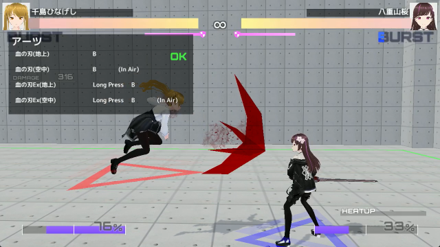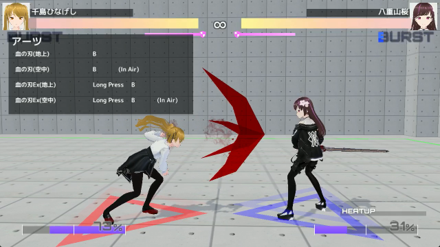 血しぶきは人の背丈ほどまで上がるため上への攻撃判定はそこそこあるが、