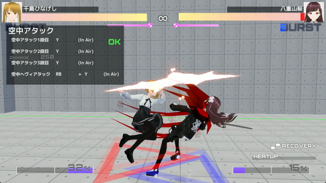 空中コンボの一段目のリーチは他のキャラとそこまでかわらない。
