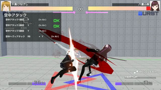斬りつける動作にも攻撃判定があり、斬りつけがヒットすると浮かせることができる。