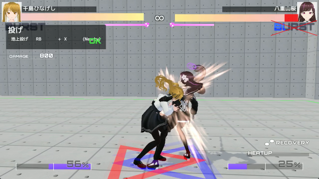 仮ダメージが若干回復し、毒効果を与える他、崩れ落ちモーションになるためそのままコンボに移行できるという、リターンの多い投げ。