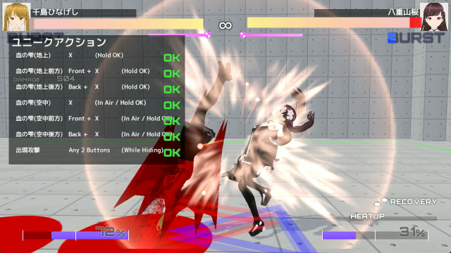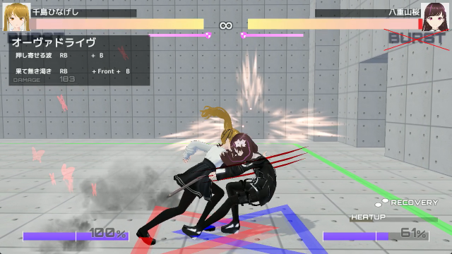 技の使用時に自傷ダメージとしてガードの削りと同様の仮ダメージを受けるリスキーな戦闘スタイル。
